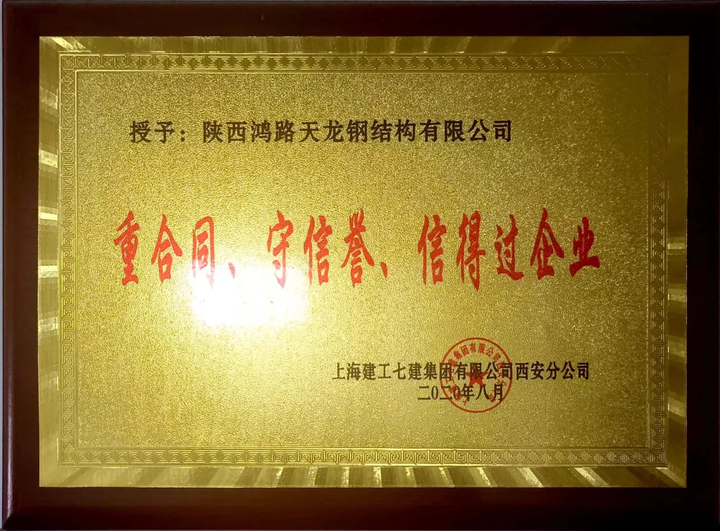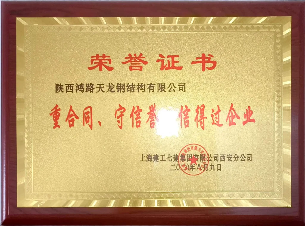 Наша компания является заместителем председателя Ассоциации стальных конструкций города Сиань. Мы неоднократно удостаивались звания «Передовое предприятие, ценящее качество и дорожащее репутацией» от Ассоциации контроля качества продукции Китая и Провинциального центра управления качеством предприятий Шэньси.